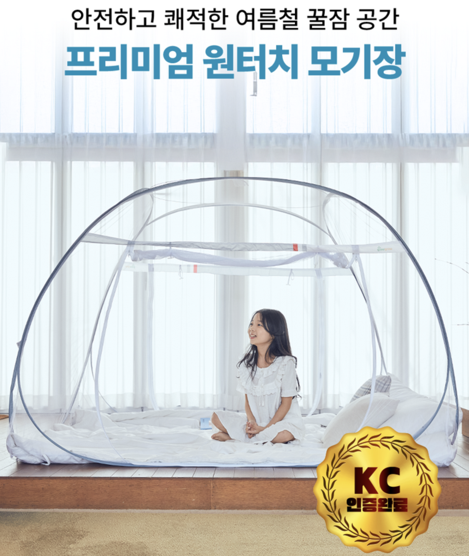 아이와 함께 쓰는 제품이라 안전이 가장 중요했습니다. 지오머스 모기장은 KC 어린이 안전 인증을 받아 화학물질 걱정이 없다는 점이 믿음직스러웠습니다. - 3초 원터치 설치