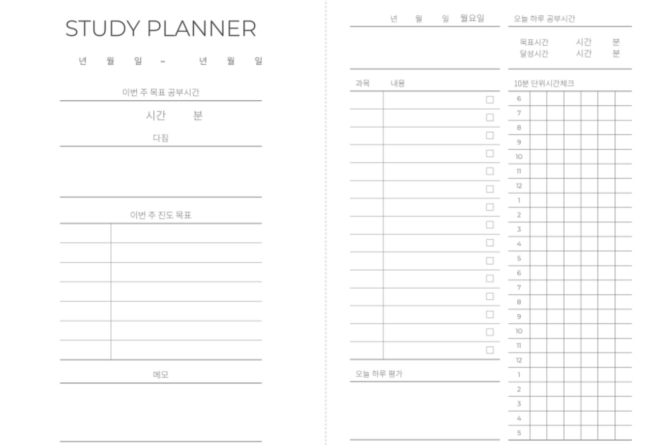 일자별 혹은 시간별로 공부의 진도를 계획하고 진행이 어떻게 되는지를 체크하는거죠!
