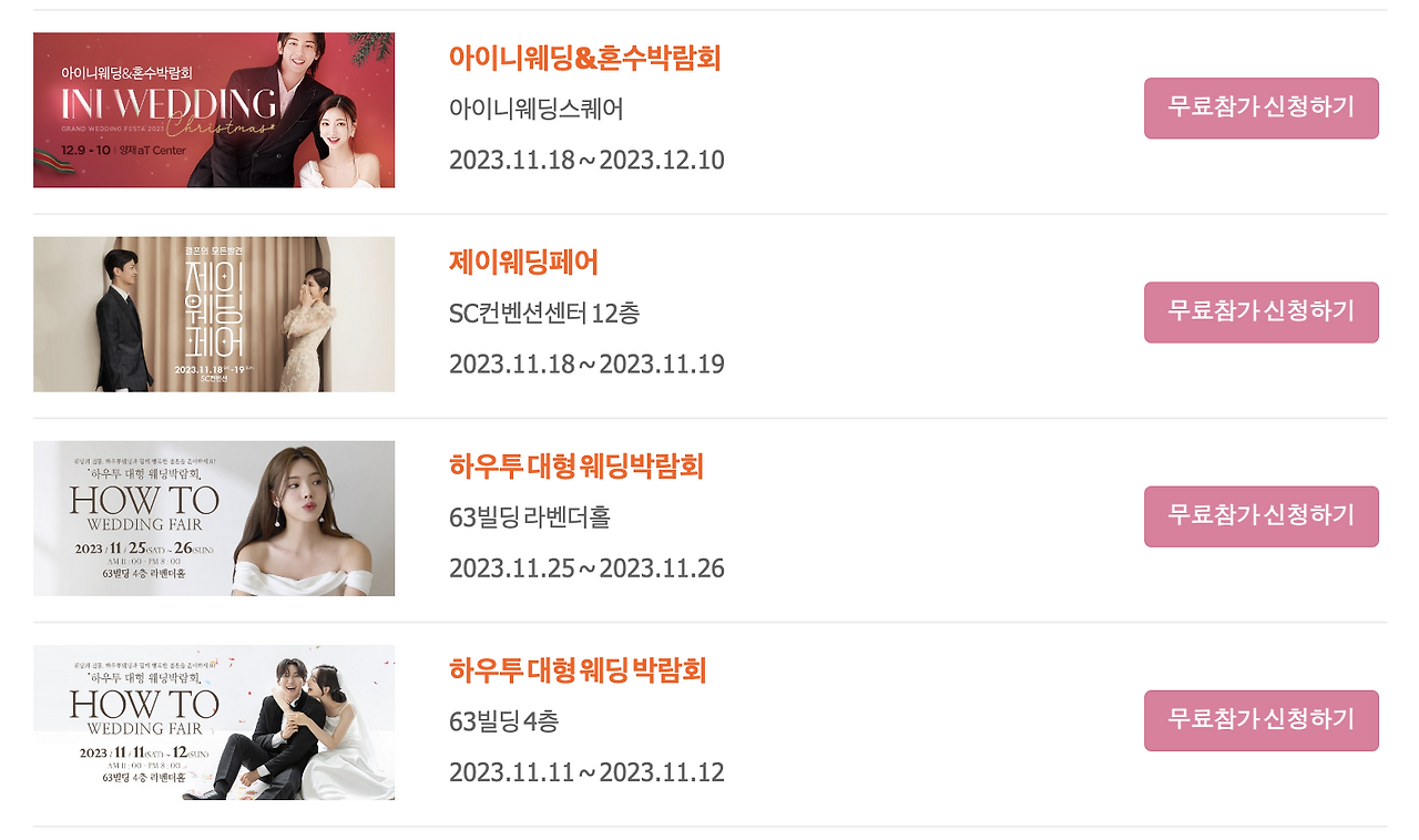 웨딩박람회에 대해서는 이후 포스팅을 통해서 별도로 다루어 볼게요.